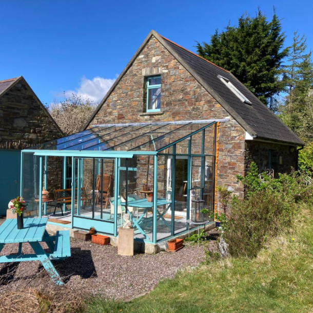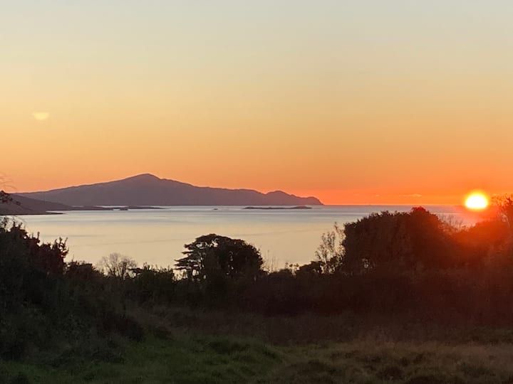 Hier trifft künstlerischer Charme auf die wilde Schönheit der irischen Atlantikküste. Das großzügige Haus liegt ruhig und abgeschieden mit einem beeindruckenden Blick über die Dunmanus Bay – ein Panorama, das zu jeder Tageszeit verzaubert. Im Inneren erwartet Sie eine helle, luftige Atmosphäre mit sorgfältig ausgewählten Möbeln, viel Holz und kreativen Details.